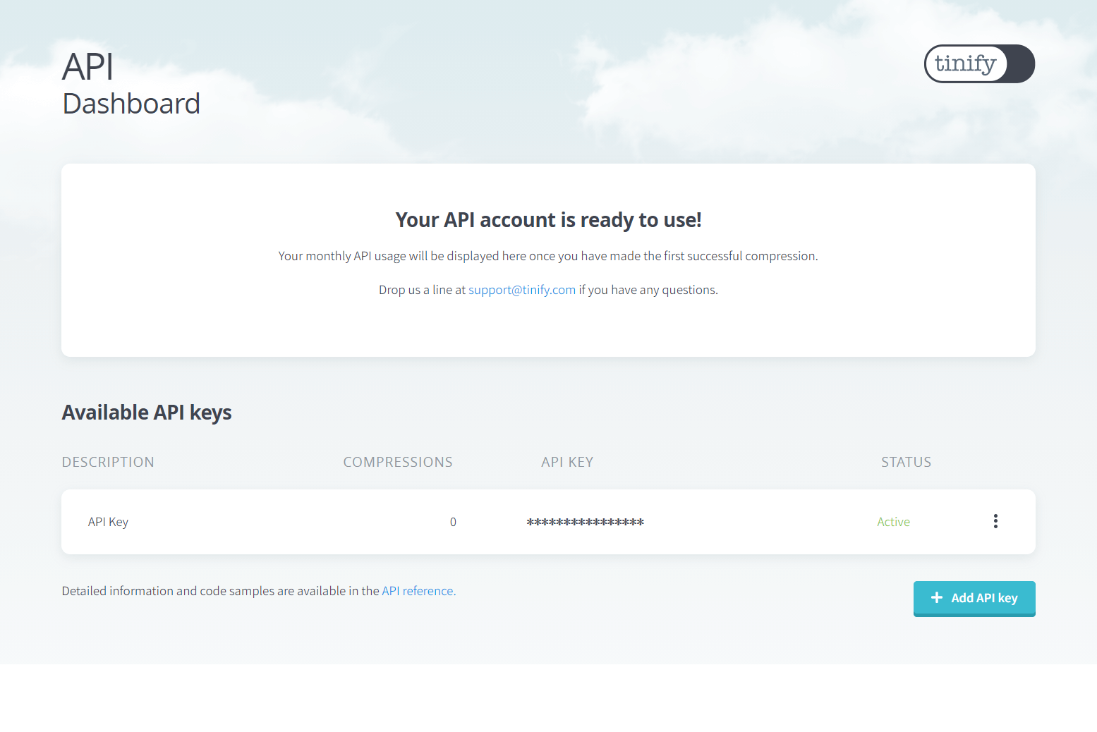 tinify.key = '****************' #在此粘贴刚刚复制的API Key