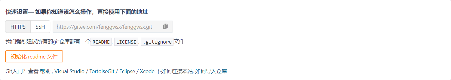 新建完成后需要初始化Readme.md文件,同时复制地址(为了使用Gitee Pages服务):