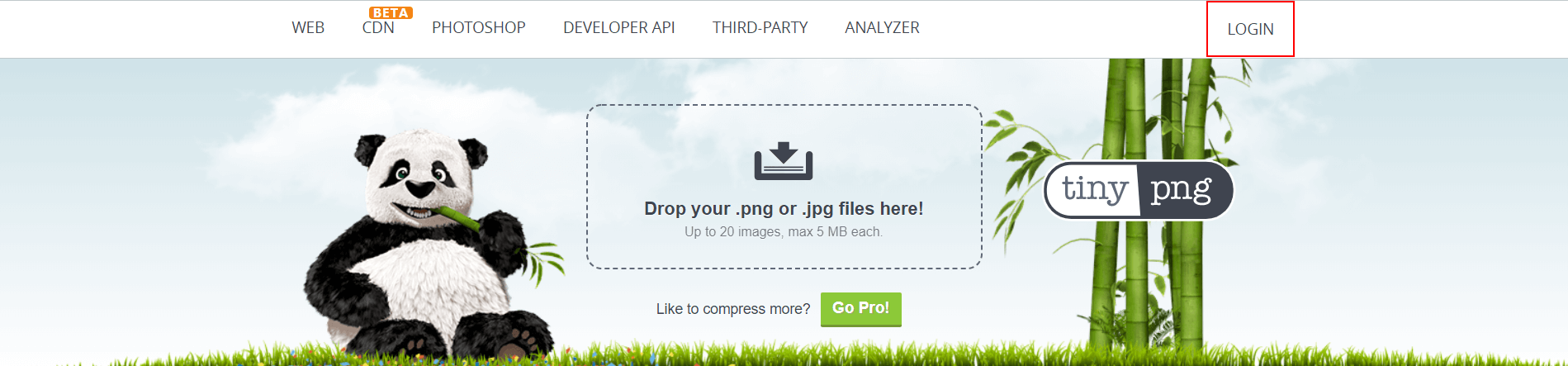 进入TinyPng的主页(https://tinypng.com/),在右上角进行注册:
