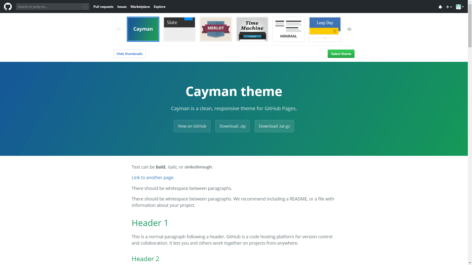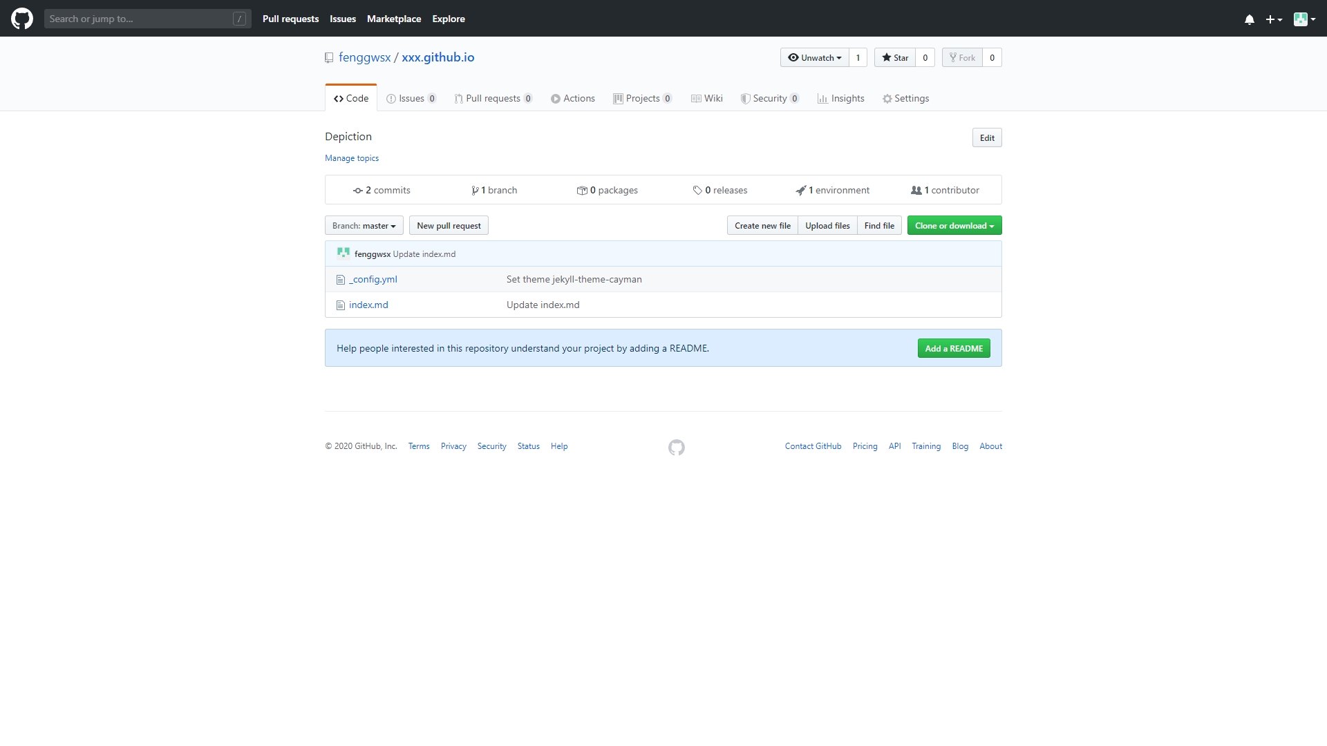 选择好你喜欢的主题以后,点击Select theme,此时你的仓库中多了两个文件,分别是config.yml和index.md