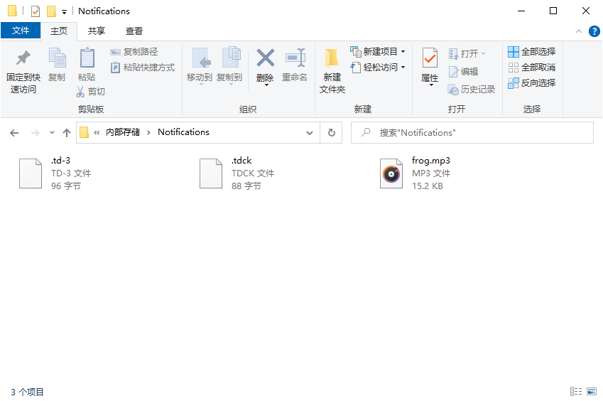 在资源管理器中打开手机的内部存储,找到Notifications文件夹,将准备好的音频文件复制进去:
