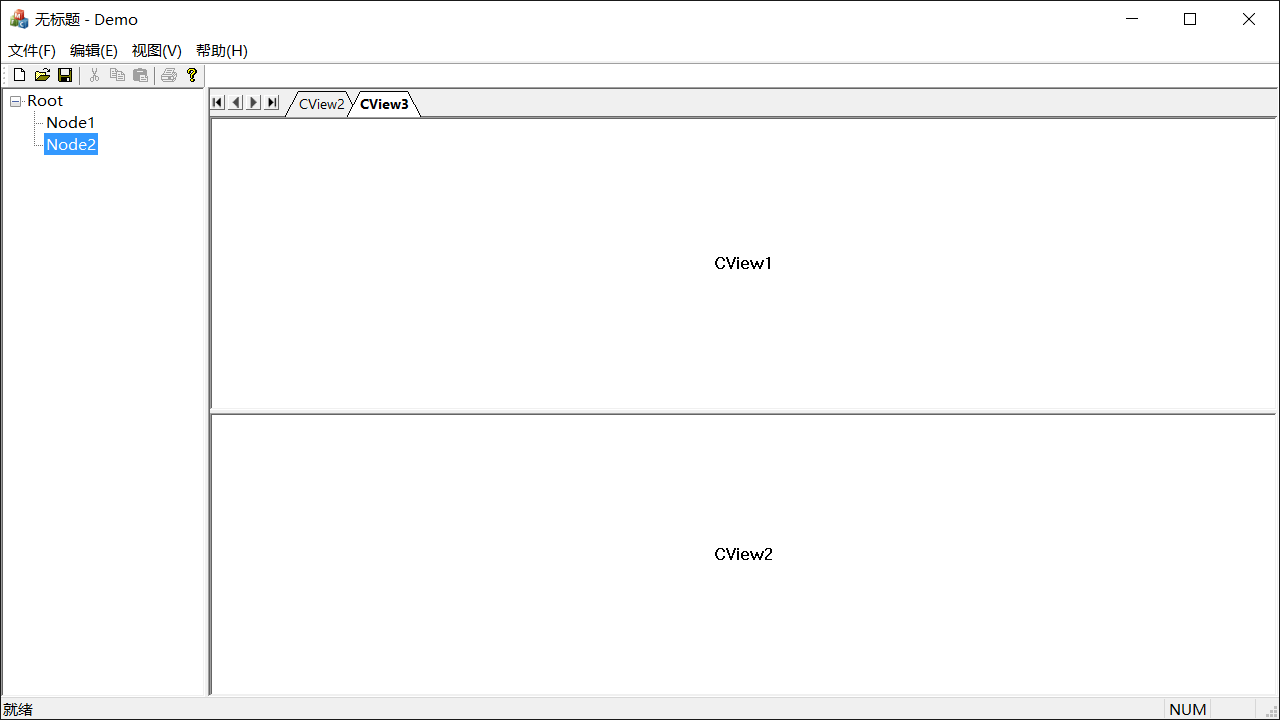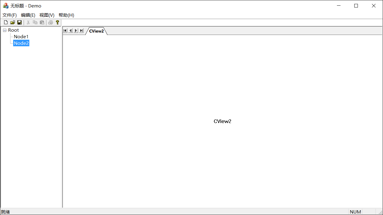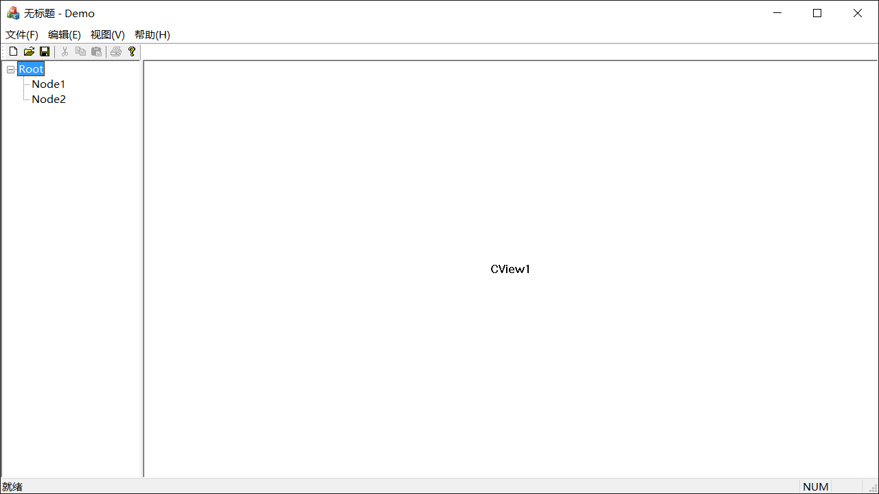 编译运行,可以看到如下界面,界面被分成了左右两块区域,左边是CIndexTreeView,右边是CView1: