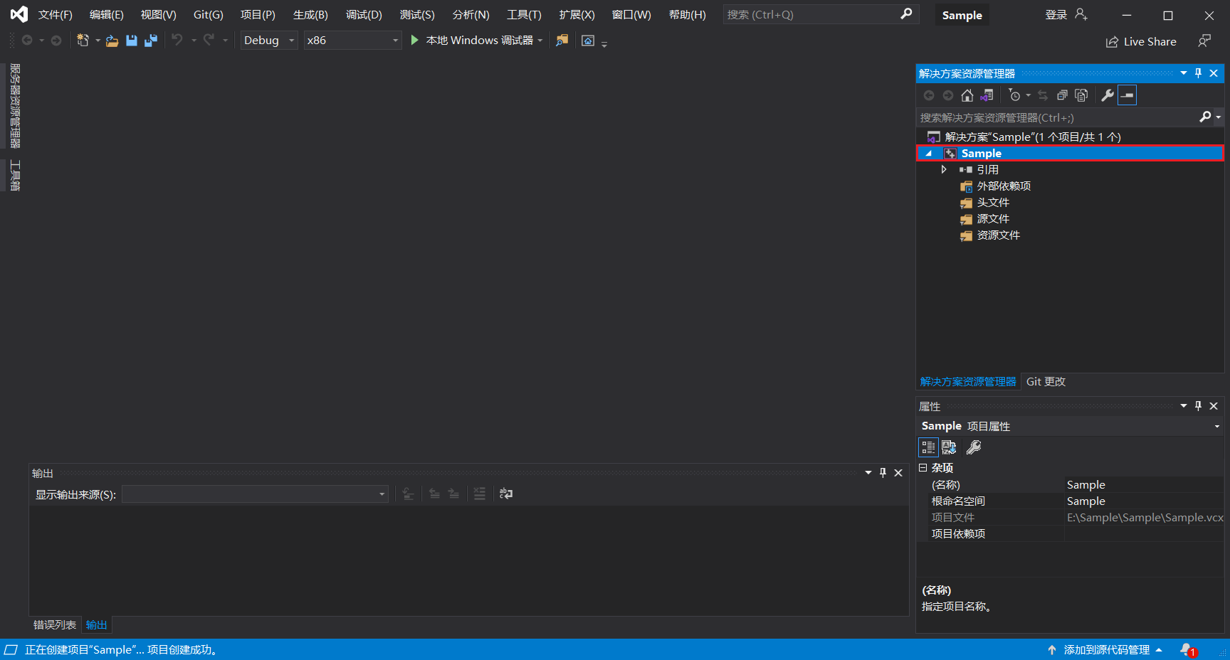 右键单击解决方案下的工程(本例中为Sample)