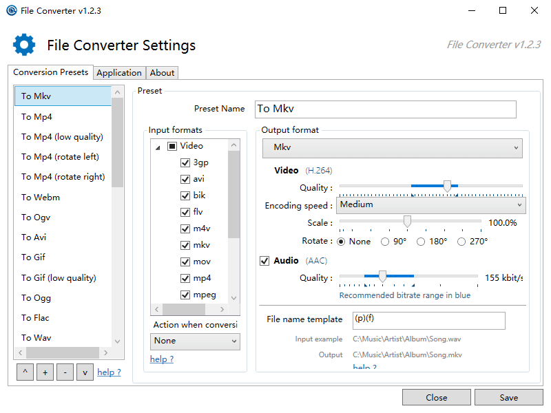 这是一款便捷的音视频格式转换工具,使用ffmpeg内核,通过右键菜单实现将音视频转成其他格式,同时选中多个文件可以实现批量转换,并且可以自定义设置右键菜单