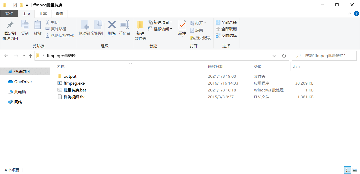 脚本中,ffmpeg -loglevel quiet -i %%a -f mp4 “output\%%~na.mp4“是核心语句,如果要输出其他格式,修改粗体部分内容即可
